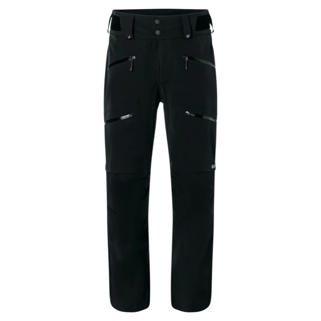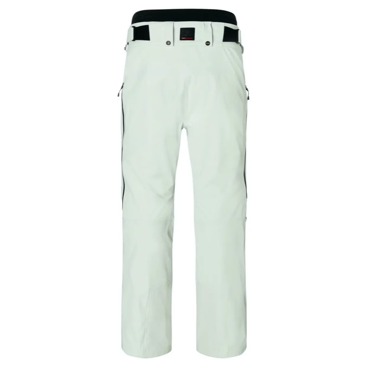 - Features | Mid Waist | Straight Leg | Ankle Cuffs | Attached Waistband with Belt Loops | Padded Lumbar Protection | Four Zippered Pockets | Fully Bonded Seams | Triple-Layered Construction