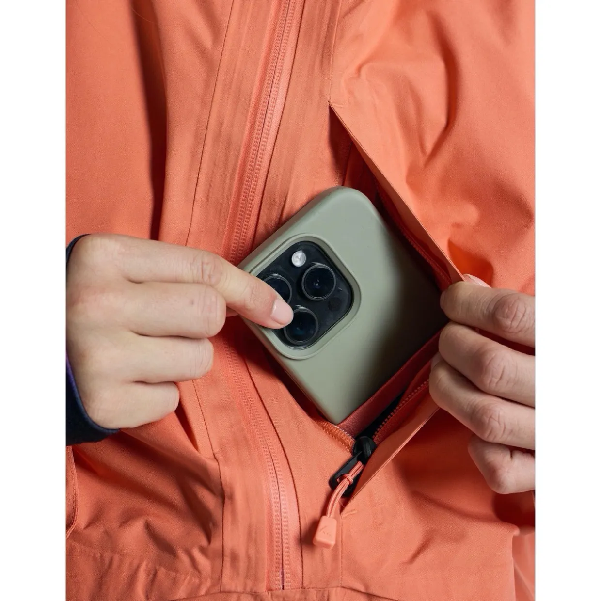 - Features | Adjustable Cuffs | Bungee Hem Cinch | Side Entry Zipper | YKK® Zippers | Helmet Compatible Fulltime Contour™ Hood with Front and Rear Adjustment | Interior Mesh Dump Pockets | Zippered Kangaroo Pocket | Zippered Sleeve Pass Pocket | Pit Zip™ Vents
