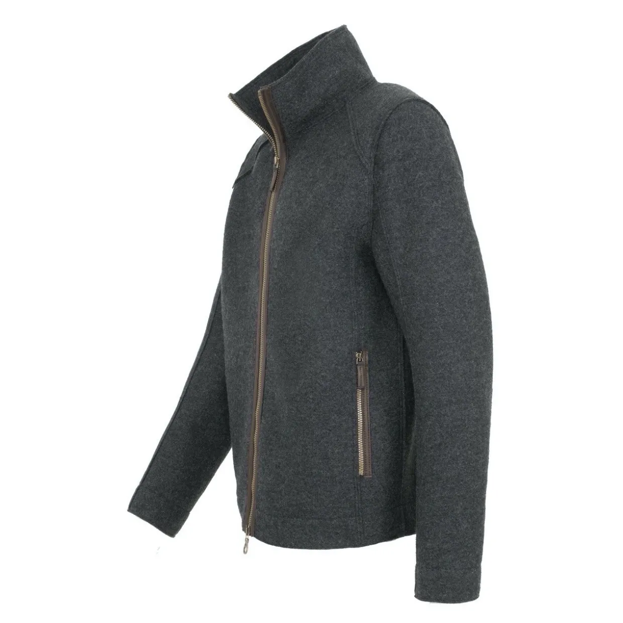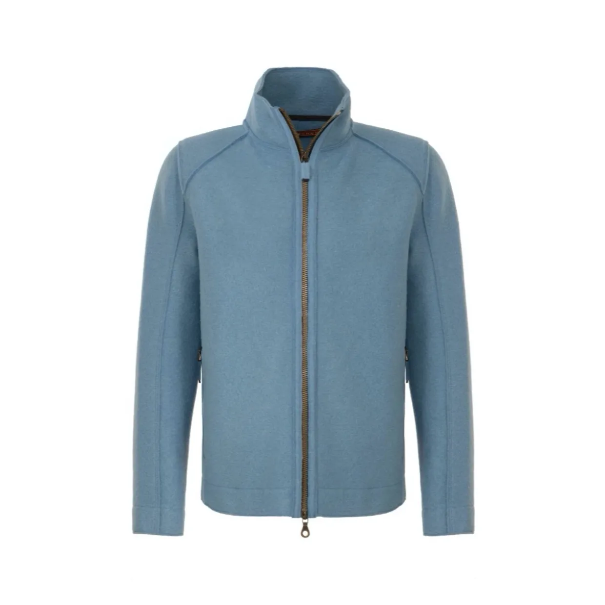 - Features | Straight, slim cut | Two-way zipper trimmed with leather | Wider cuffs | Distinctive shoulder area reinforced with filling