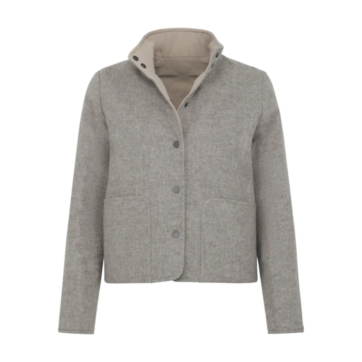 - Features | Two Pockets with Metal Snap Fastener | Metal Snap Fasteners | Linen-Edged Seams on Pockets, Shoulders, and Sleeves | Breathable, Water and Dirt Repellent | Emphasizes Feminine Fit | Slightly Shorter Cut
