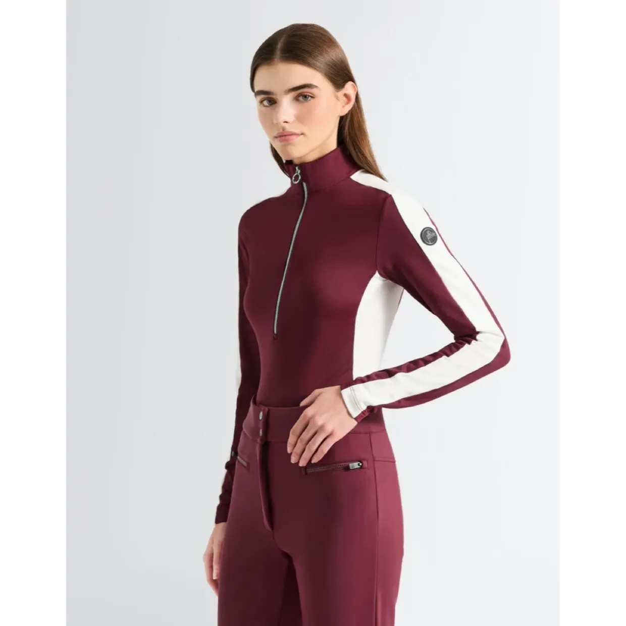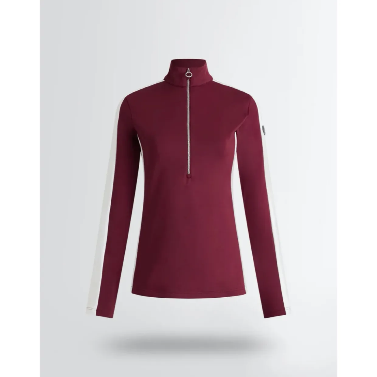 - Features | Brushed powerstretch material | High collar | Half-zipped front opening | Contrasting stripe along the shoulder and arm