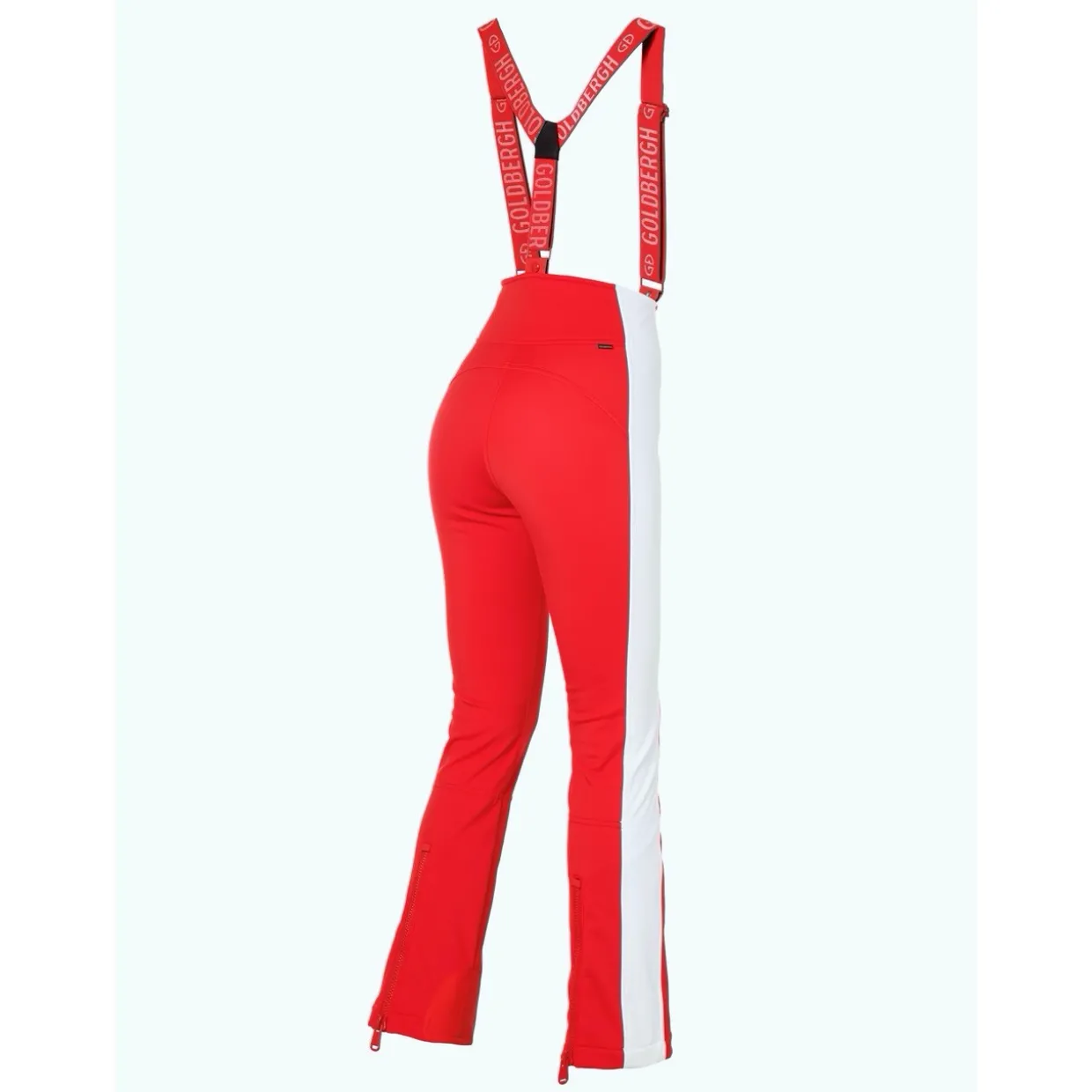 - Features | Two Pockets with Zippers | Detachable Elastic Suspenders | Zippers at Back of Hem | Snow Catcher at Bottom
