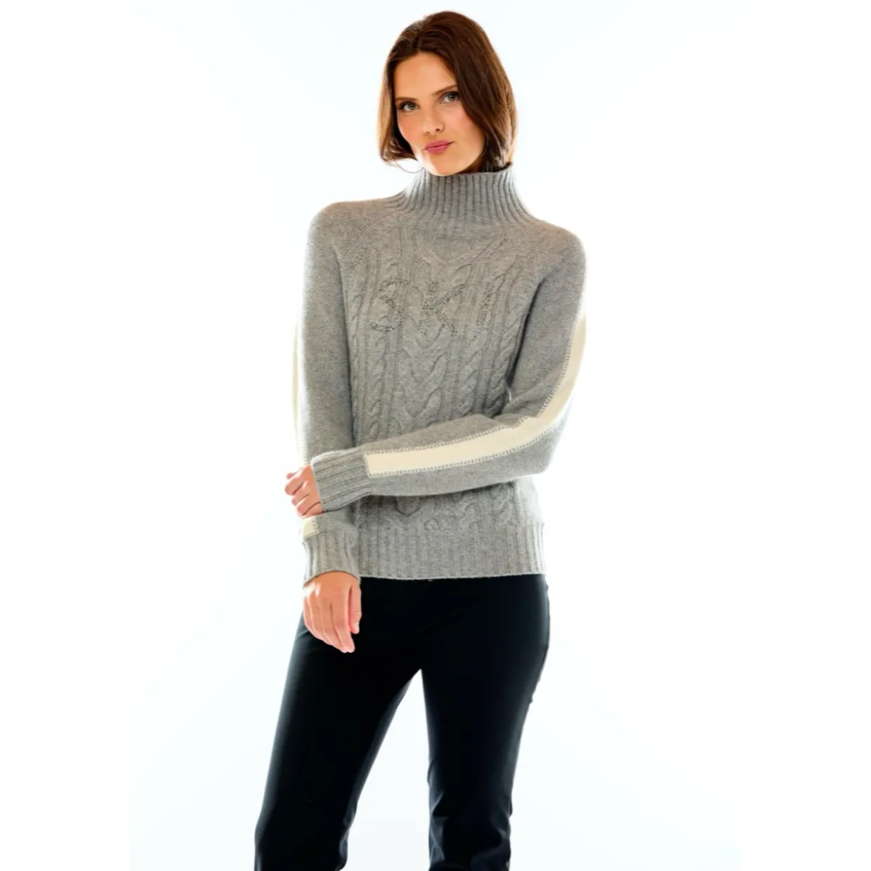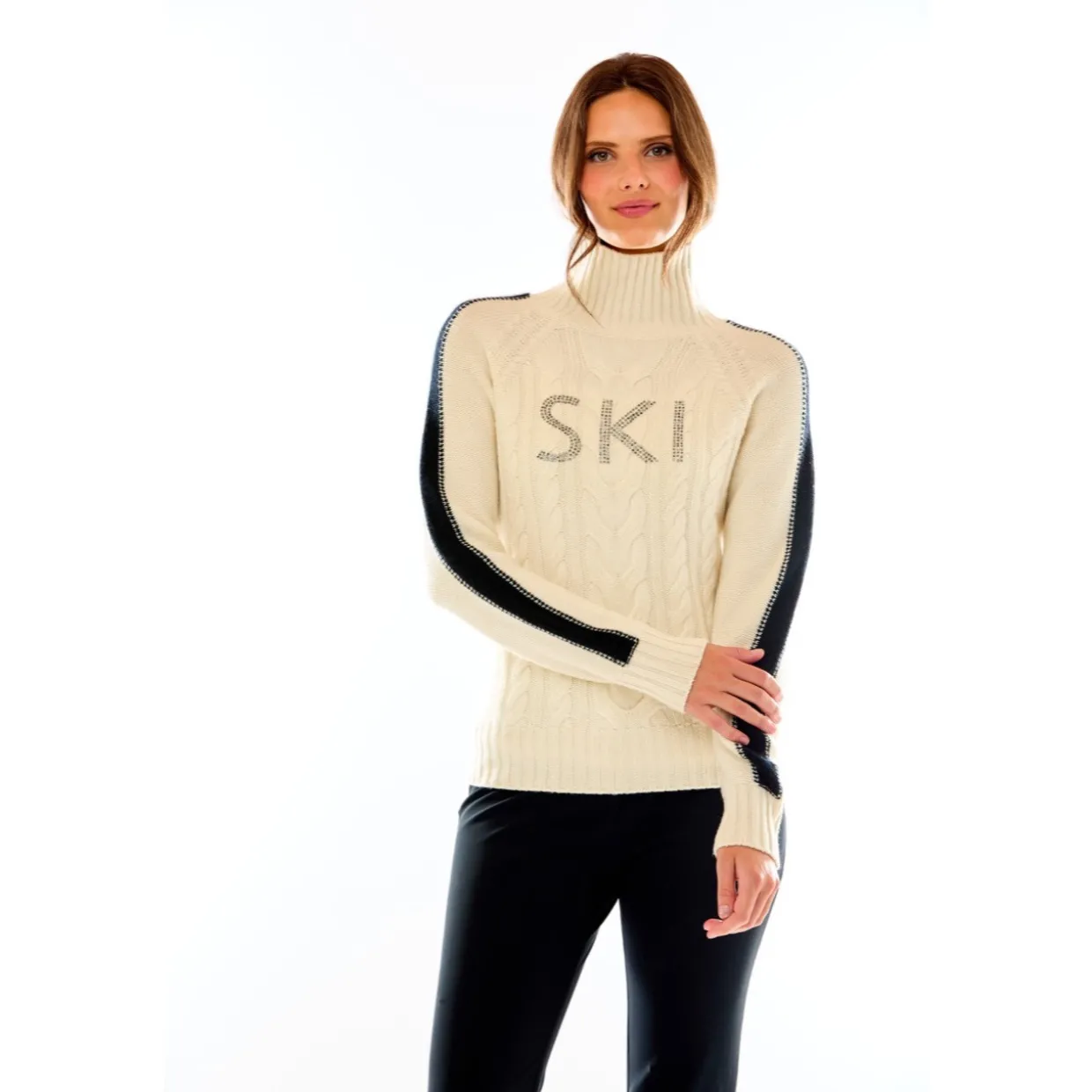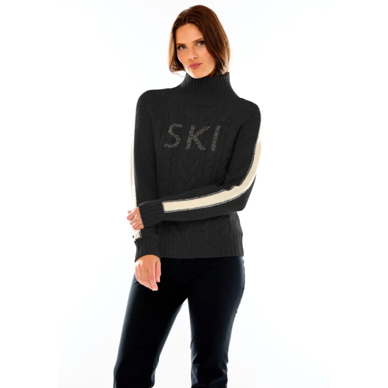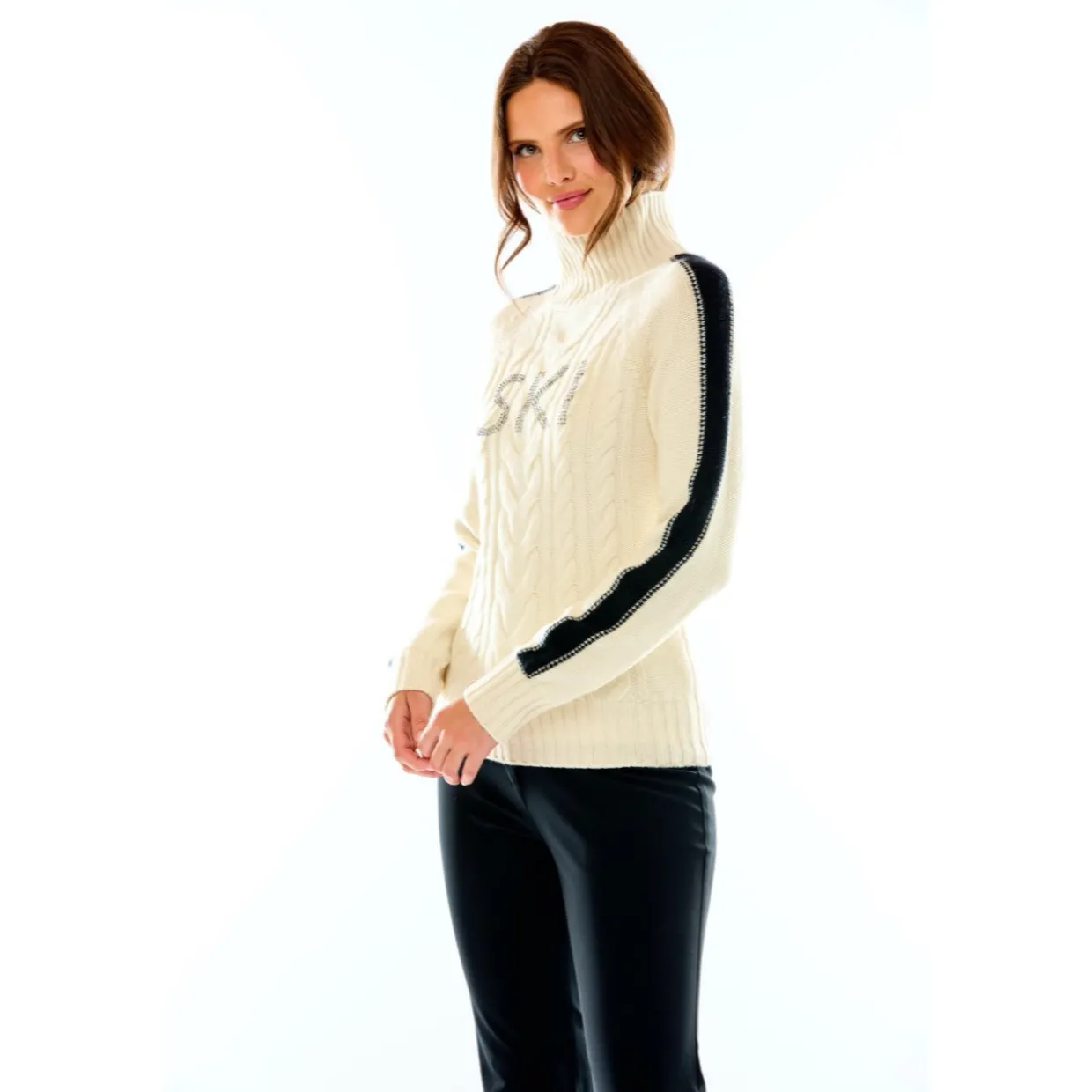 Mark Miller Elle Crystal Stripe Sweater combines luxurious comfort with eye-catching winter style, crafted from premium soft-touch yarn for breathable warmth and all-day comfort. The elegant crystal stripe detailing adds refined sparkle to a classic silhouette, making it perfect for both après-ski outings and everyday winter wear. With a relaxed yet flattering fit, this sweater pairs effortlessly with jeans, leggings, or layered under jackets — bringing a polished, alpine-inspired look to any cold-weather wardrobe.