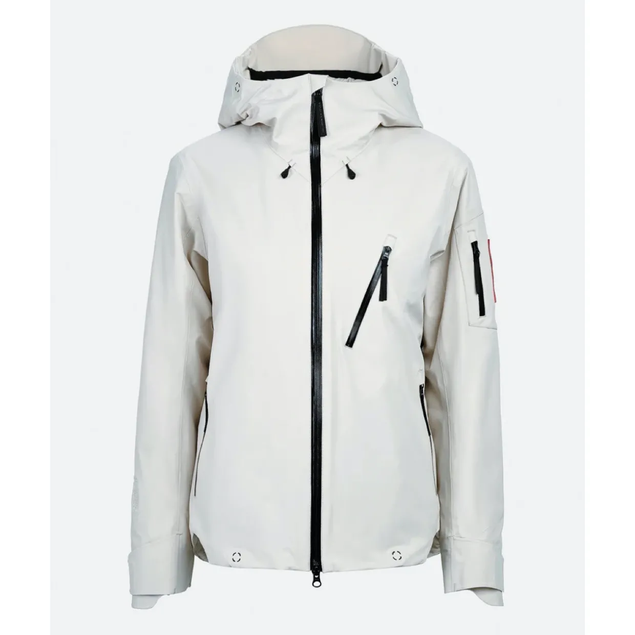 - Features | 100 % seam taped ALP-3 stretch fabric | Coahesive cord stoppers | Ski pass pocket on sleeve | Under arm ventilation zippers