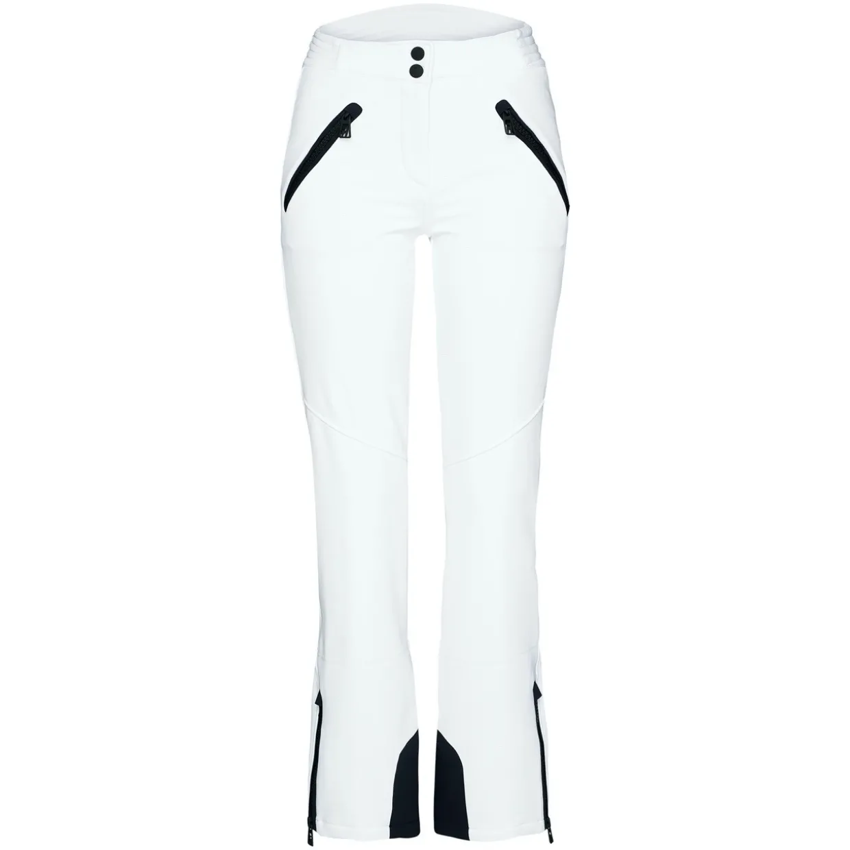 Playful and technical, the Ella Ski Pant by Toni Sailer makes a statement on the slopes. Crafted from a three‑layer softshell stretch fabric that is both waterproof and breathable, these pants offer exceptional comfort and freedom of movement. A slim, flattering cut is complemented by functional details including zip hand pockets, elastic snow gaiters, and side zip leg openings with reinforced edge protection for durability. The Ella brings a fresh, spirited touch to high‑performance ski wear.