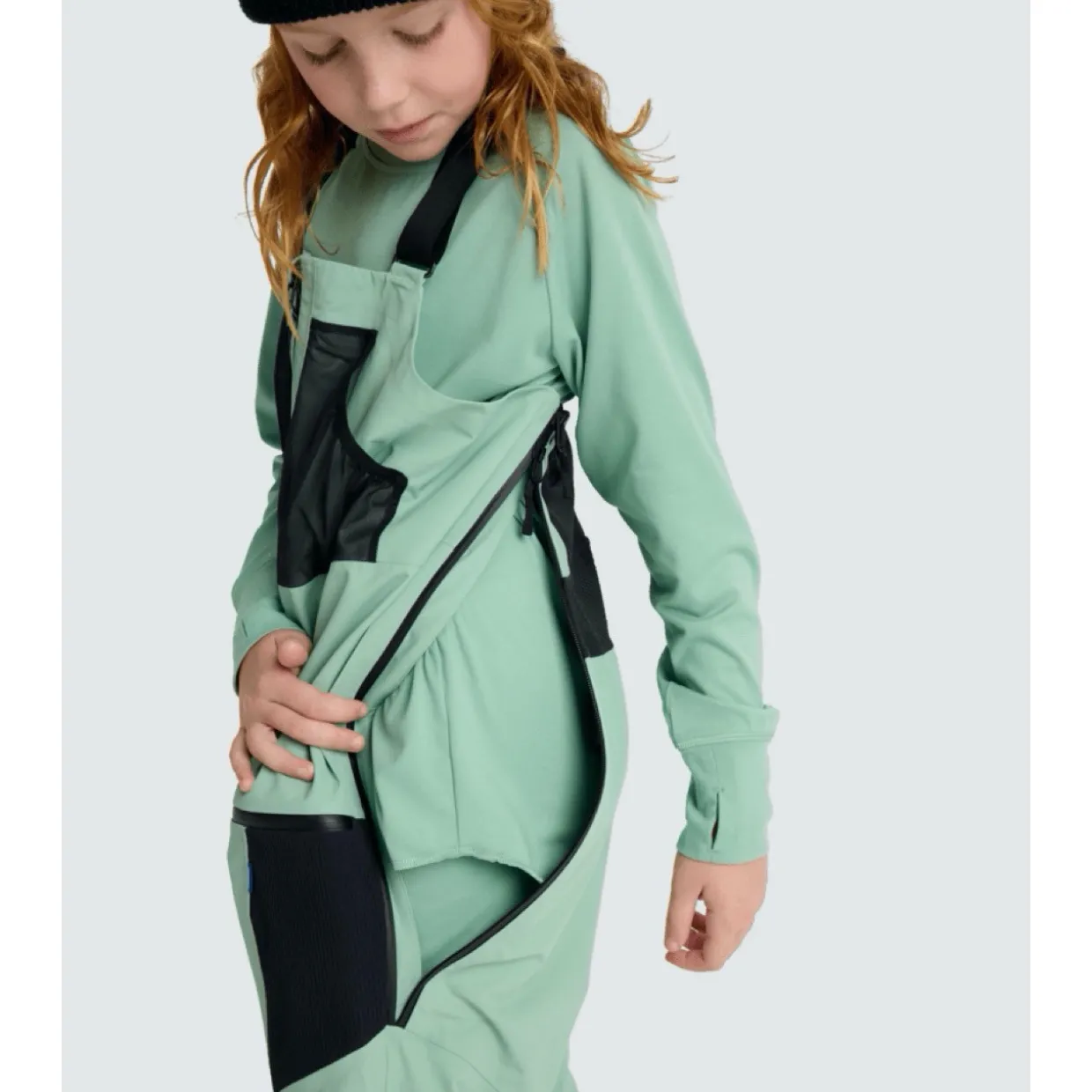- Features | Zippered Drop-Seat Construction | Pant Length Adjustability | Stretch Back Panel | Stretch Back Yoke | Snap Adjust Elasticized Cuff | Adjustable Hook and Loop Suspenders | Unisex Style | YKK Water Resistant Zippers | External Chest Power Mesh Dump Pockets | Zippered Side Body Vents