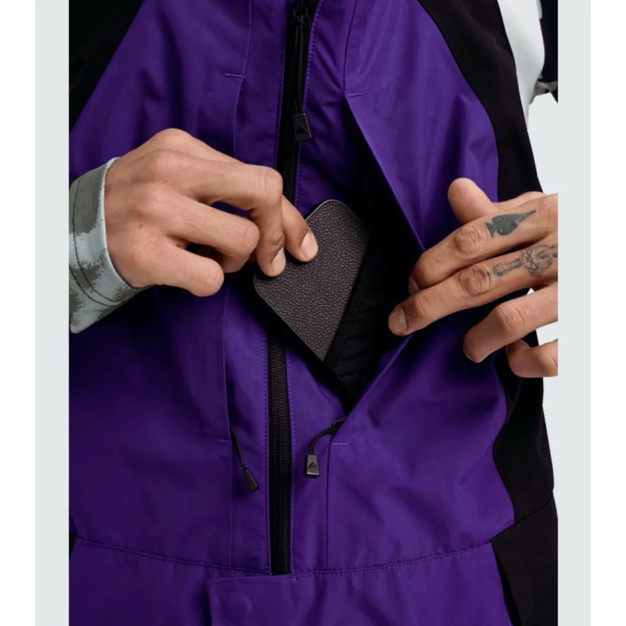 - Features | Crotch Gusset | Stretch Fabrication | YKK Water Resistant Zippers | Back Pockets with Hook-and-Loop Closure | Zippered Microfleece Handwarmer Pockets | Zippered Chest Pockets | Mesh-Lined No-Snag Continuous Inner Thigh Vent
