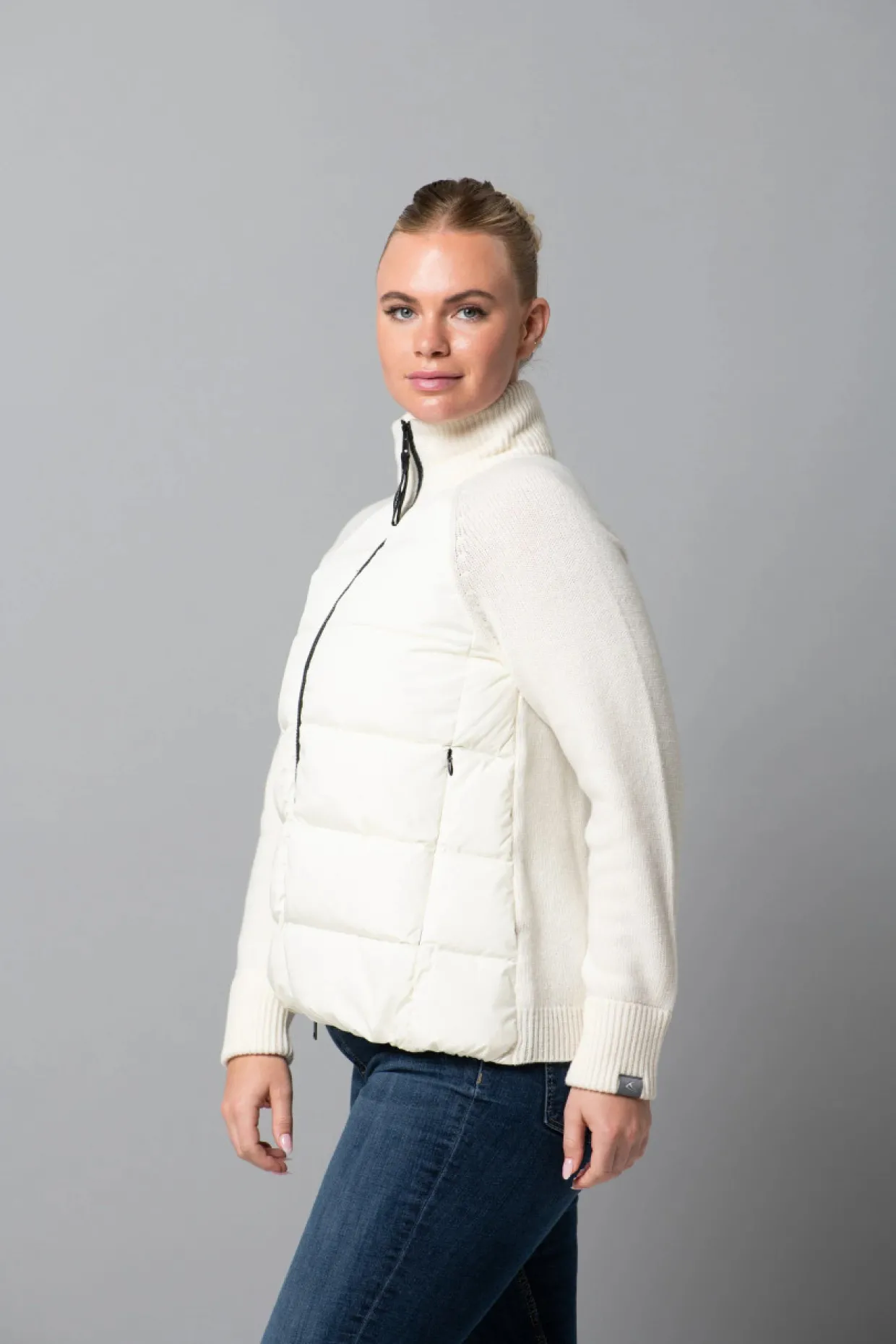 The Women’s Capranea Acletta Jacket captures the elegance traditionally found in a cashmere sweater, The Acletta provides the coziest experience through its hybrid mix of down and soft touch open-knit merino wool. Made for the days shopping in Park City, snuggling with a book by a fire, and the most sophisticated alpine receptions, never has a garment so impactfully changed your life, until now.