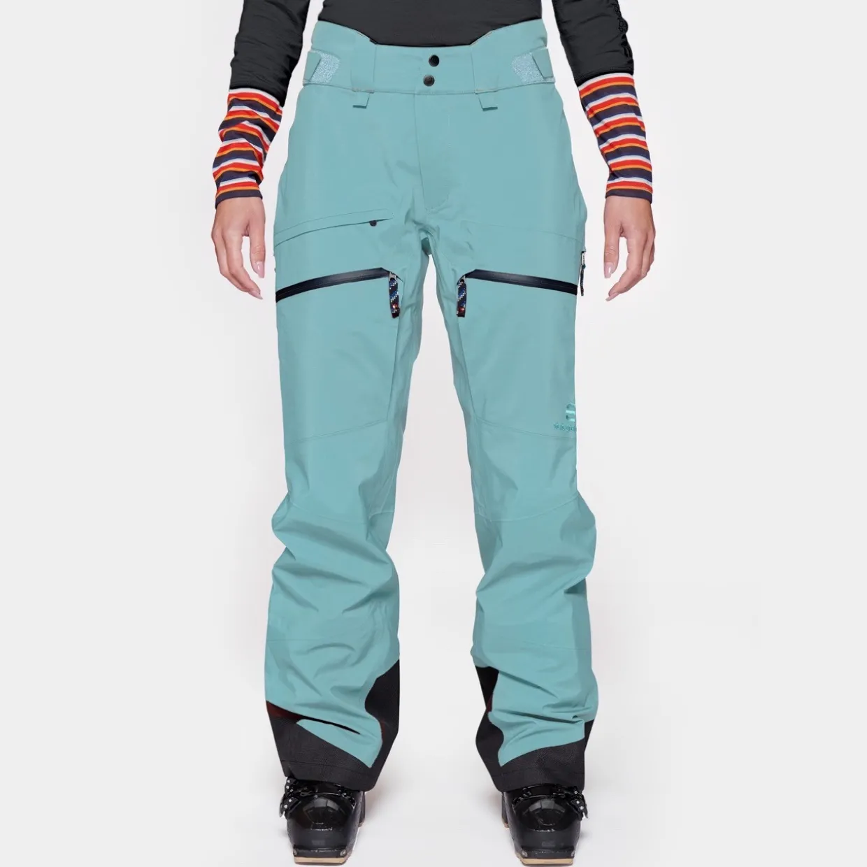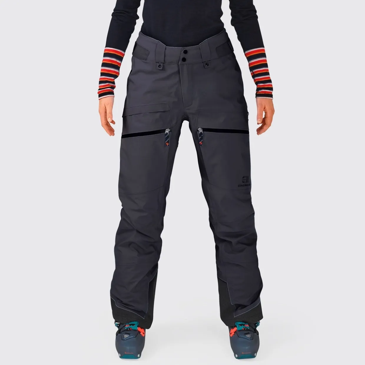 - Features | All seam-sealed, 3-layer Gore-tex with thin, flannel-like backing, 3/4-length two-way side zippers, Relaxed fit with pre-shaped knees and high, sloped waistline, Velcro adjustment with hidden elastic at the waist, Large cargo leg pockets with bellows for great storage possibilities, Zippered transceiver pocket with D-ring attachment, Zippered back pocket, Press buttons at waist give snap-to-jacket functionality, Snow gaiters with anti-slip elastic, Shaped leg endings that work well with ski bindings, Schoeller Keprotec reinforcements at lower leg, YKK water-resistant zippers