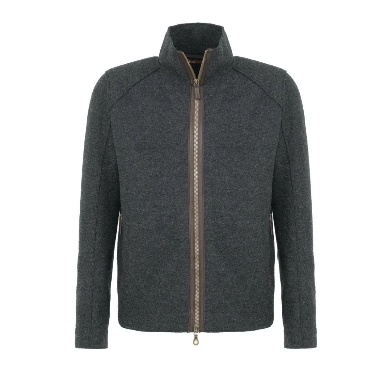 - Features | Straight, slim cut | Two-way zipper trimmed with leather | Wider cuffs | Distinctive shoulder area reinforced with filling