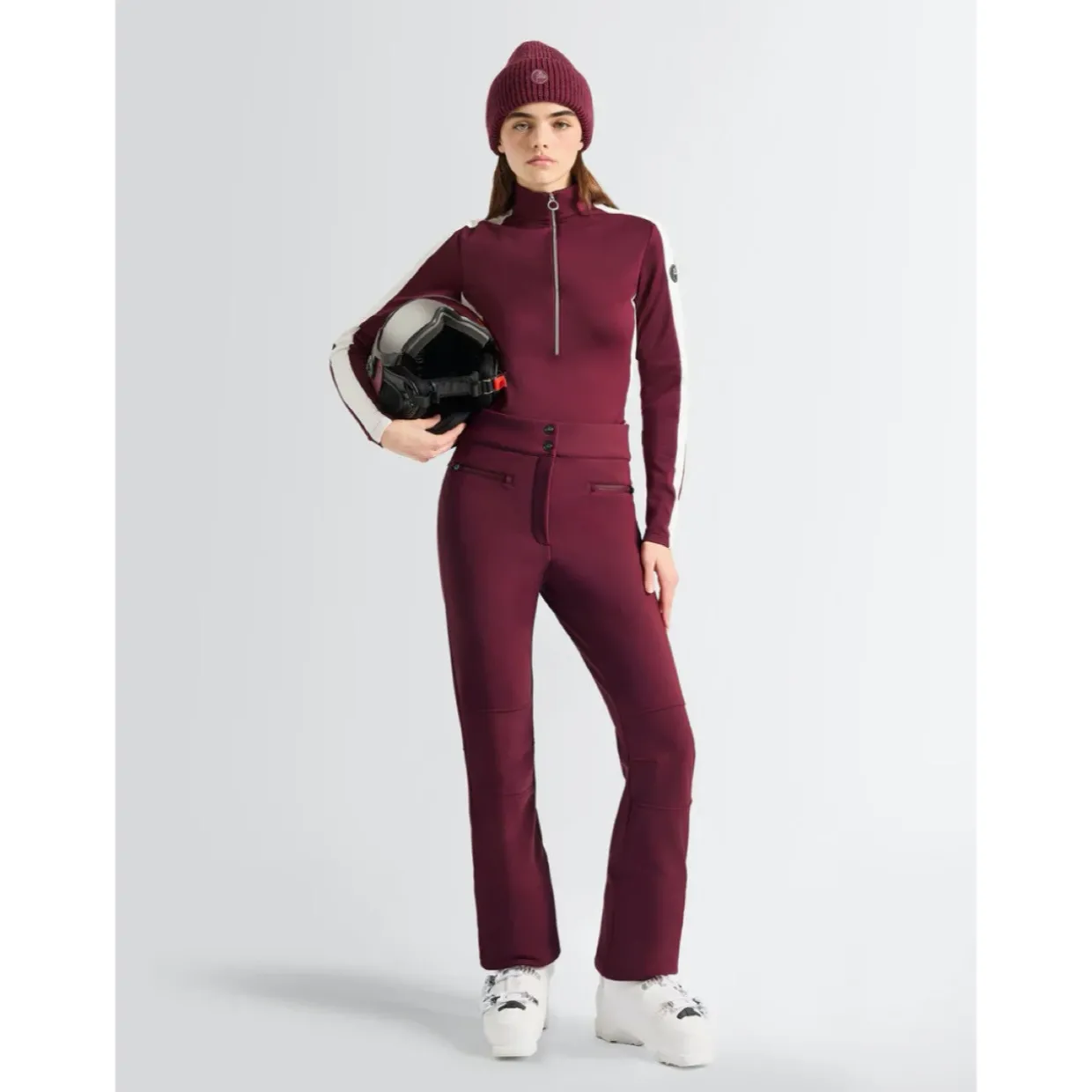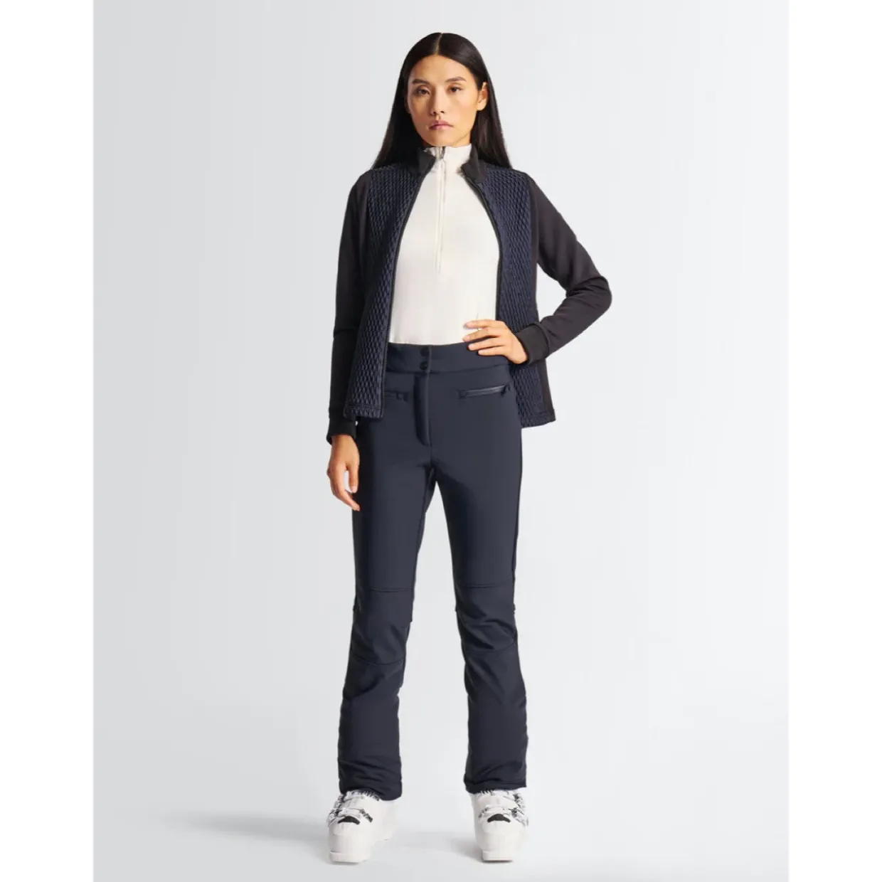 The Fusalp Diana pant elegantly fit tight to the leg for a sleek look. Made with windproof stretch bonded fleece, these modern pants are a must have for any women’s ski wardrobe.