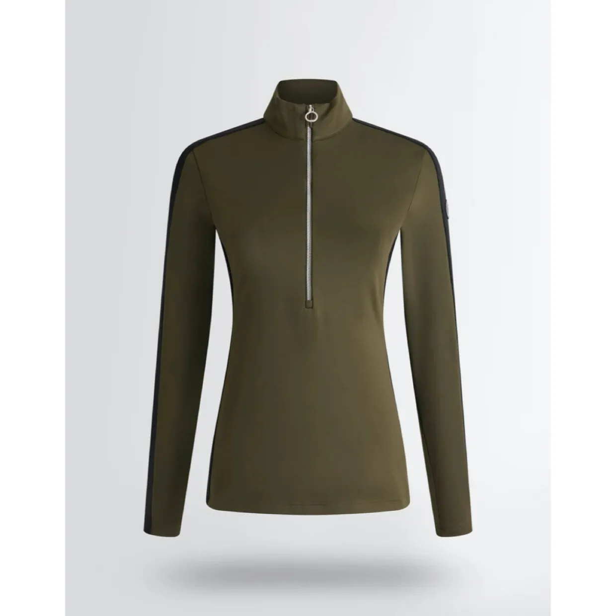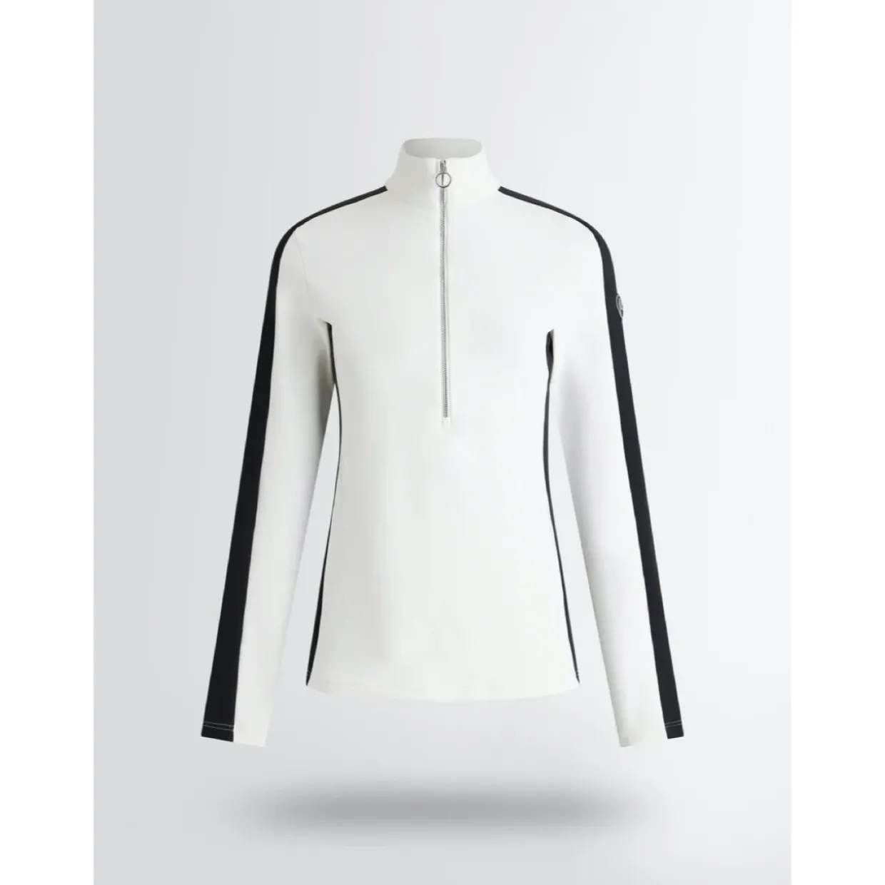 - Features | Brushed powerstretch material | High collar | Half-zipped front opening | Contrasting stripe along the shoulder and arm