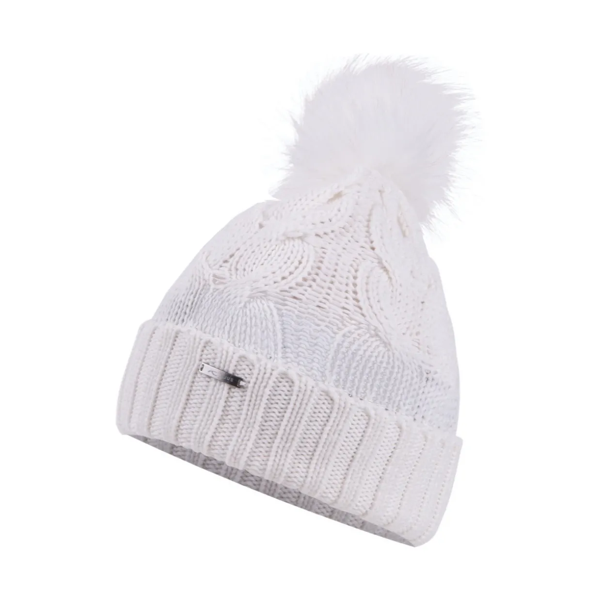 - Features | Cable knit | Faux fur pompom