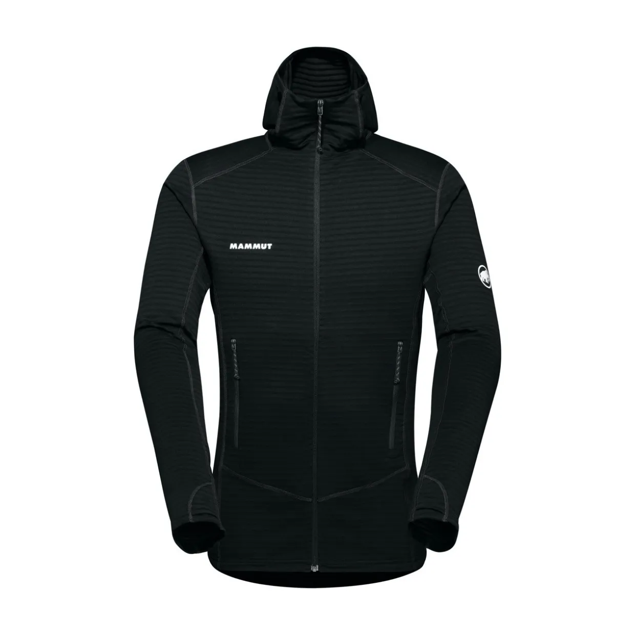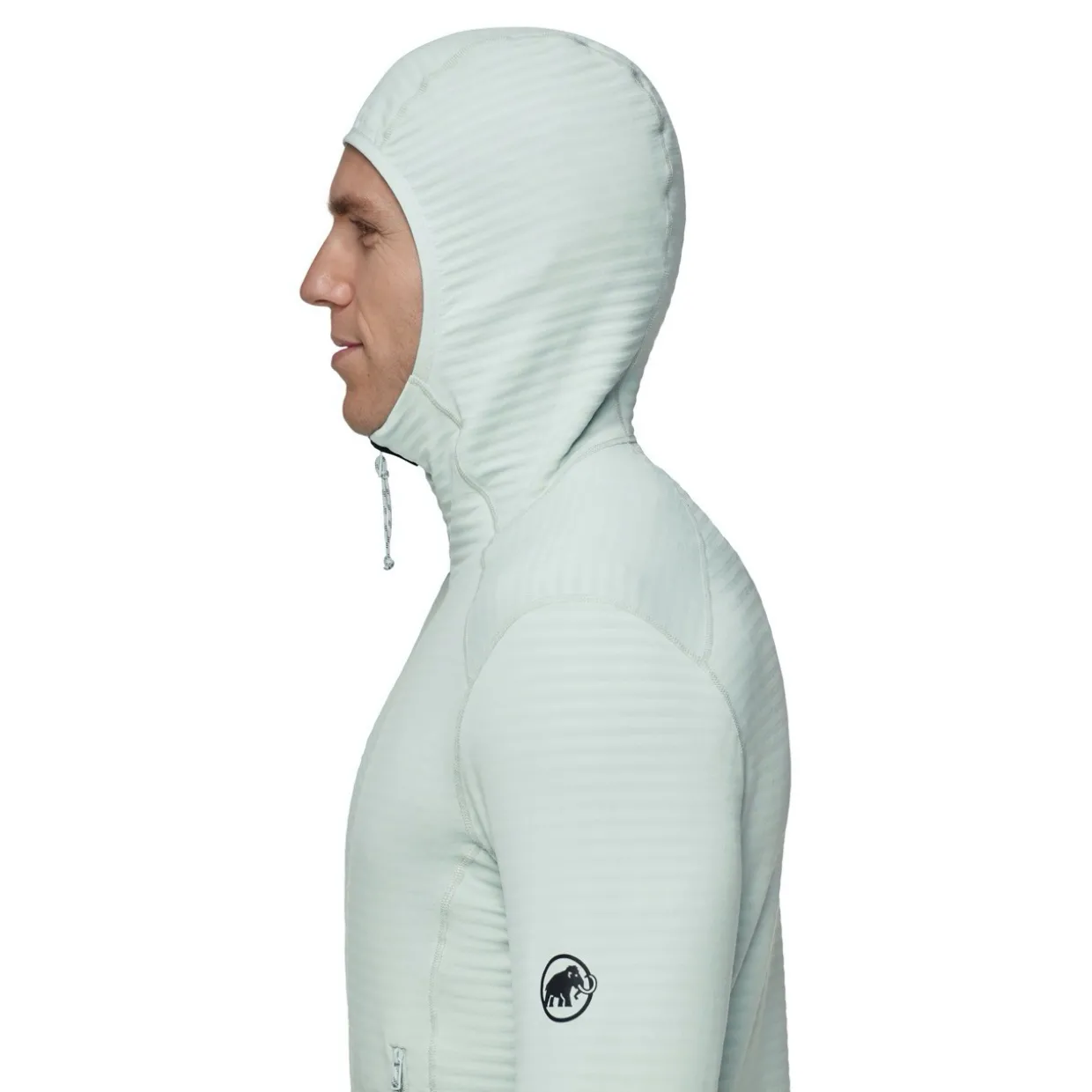 - Features | Lightweight, comfortable, stretchable material, Robust fabric thanks to polyamide content, Regulated moisture-wicking prevents rapid overcooling, Very good warmth-to-weight ratio, Fitted hood can be worn under a helmet, Hood with elasticated border, 2 backpack and climbing-harness-compatible zipper pockets, Functional underarm gusset for optimum freedom of movement, Flat seam design for a high level of comfort and to avoid chafing under the backpack, Functional thumb loop closes neatly at the opening