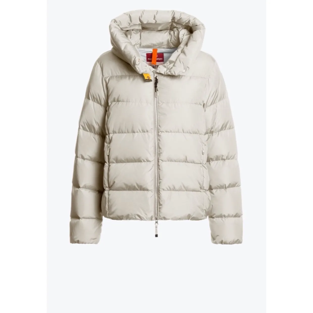 Parajumpers Jinny Hooded Down Jacket features a sleek, water-repellent nylon shell and a premium 100% duck down fill for lightweight warmth in cool climates. Designed with a detachable hood, two-way front zip, and underarm ventilation, it balances technical functionality with a soft, minimal silhouette. Finished with elastic cuffs, a drawcord hem, and Parajumpers’ signature yellow tape at the neck, the Jinny is a refined puffer that transitions effortlessly from the city to the slopes. .