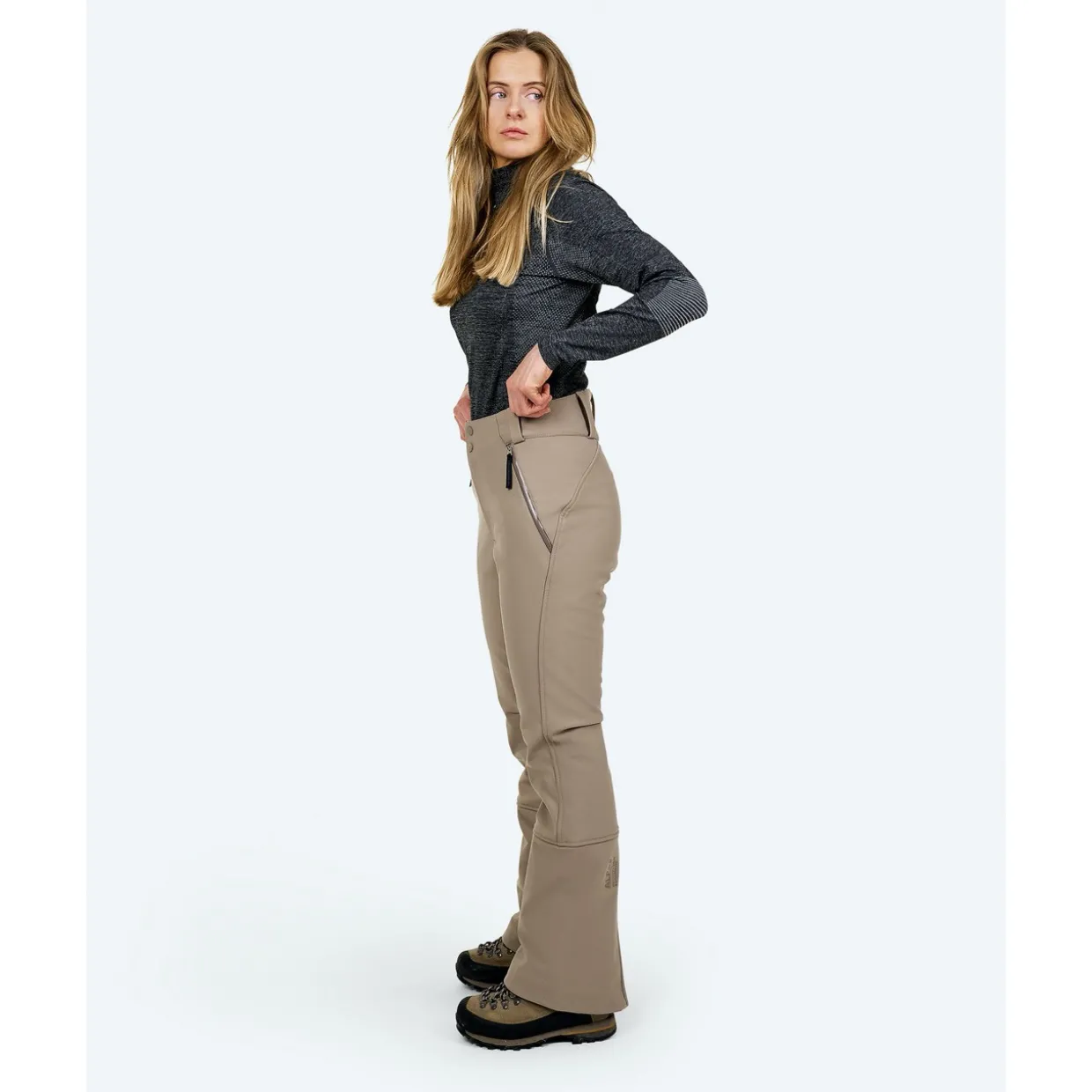 The Mountain Studios 2L Stretch Ski pants delivers both performance and comfort from a blonded fleece sofshell fabric. Water-repellent and windproof, it features a brushed interior for optimal warmth and a soft, cozy feel. The fitted, slender silhouette offers a sleek, modern look on and off the slopes. An innovative waistband construction includes a thin, flexible barrier of DuPont™ Sorona® insulation at the back for added warmth and comfort around the lower back area. Additional details include a 600-denier scuff guard at the bottom hem for enhanced durability and a leg zipper for easy access and a refined finish.