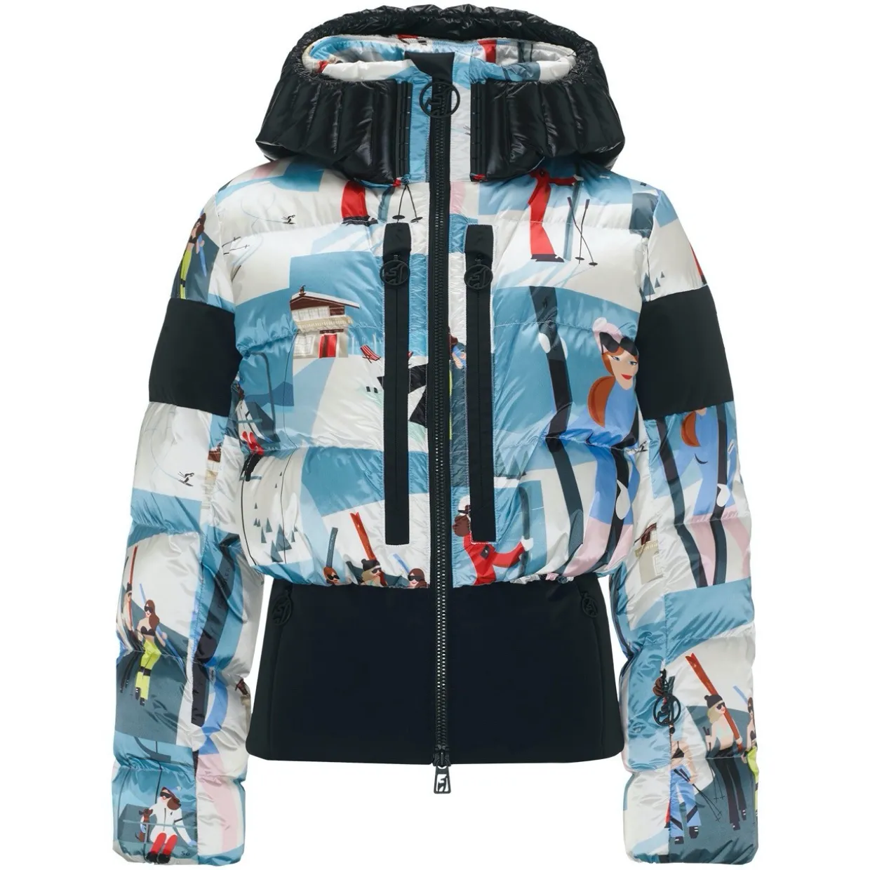 The Bernadette Print Down Ski Jacket by Toni Sailer combines modern alpine style with advanced performance. Crafted from premium four-way stretch fabric and insulated with a blend of down and PrimaLoft®, it provides warmth, flexibility, and comfort on the slopes. A detachable quilted hood and streamlined fit give this jacket a refined edge, making it as timeless as it is functional.