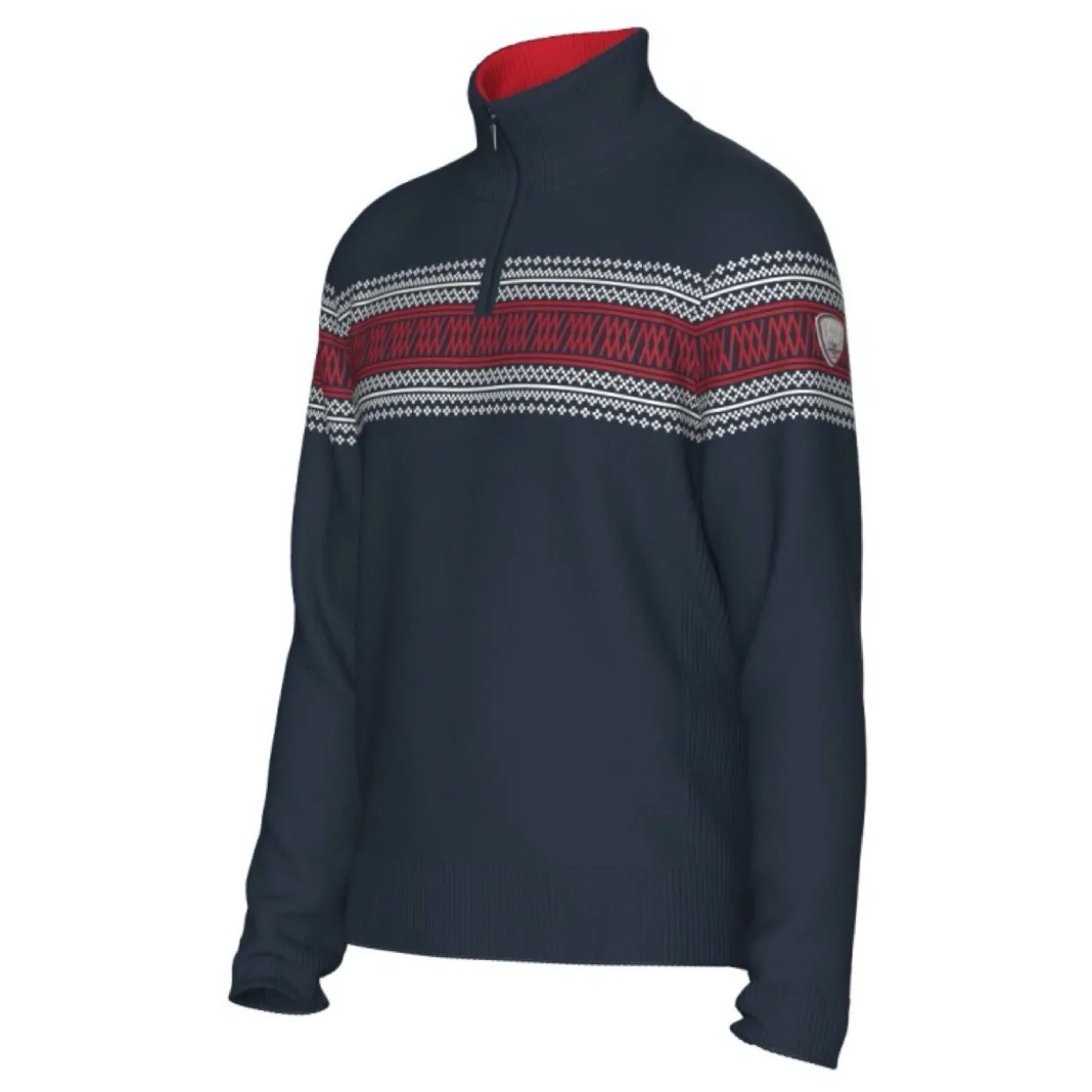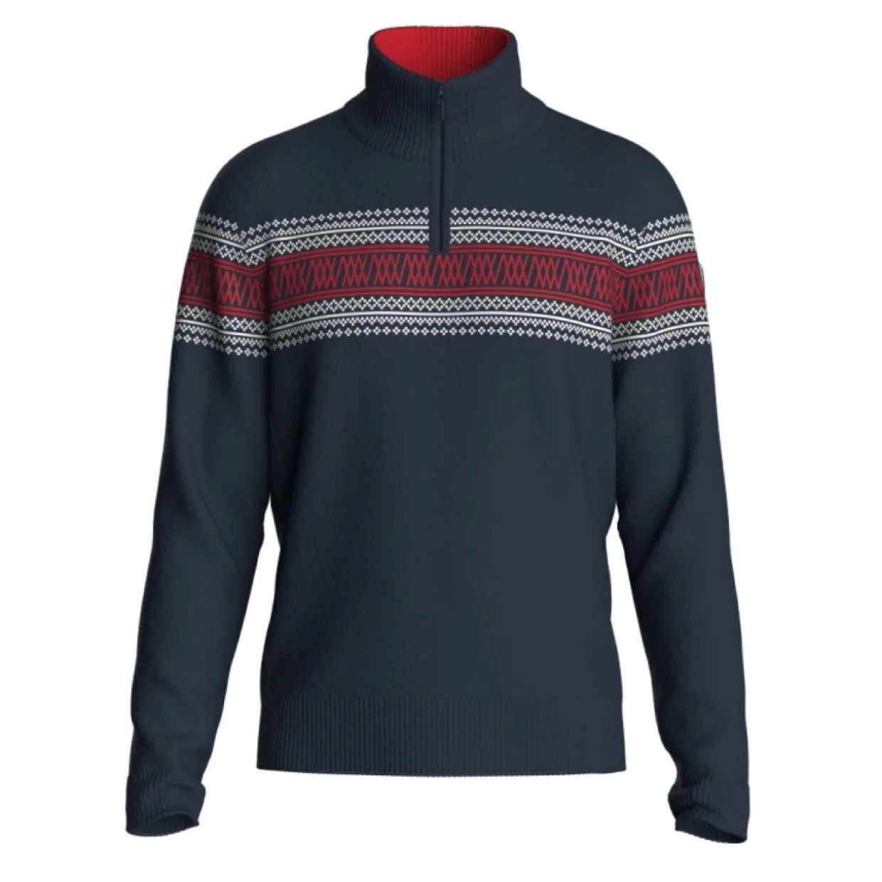 The We Norwegians Signature Zipup is our take on a traditional Setesdal pattern that features a modern twist with an integrated logo design. This style is knitted in a soft, washable merino yarn from Südwolle, offering next-to-skin comfort without any itch. We have added ribbed details in the sides and the shape is slim fit.